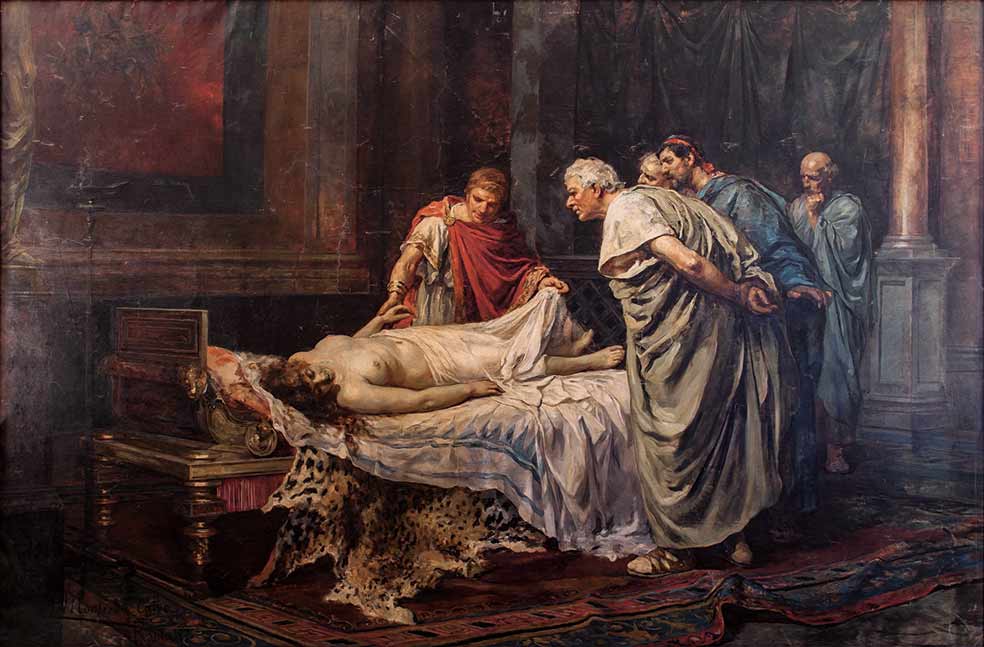 Tácito no elude los detalles tétricos cuando describe la ejecución de Octavia, la primera mujer de Nerón: «La sujetan con grilletes y le abren las venas de todos los miembros; y como la sangre, paralizada por el pavor, fluye demasiado lenta, la asfixian en el calor de un baño hirviendo. Y se añade una crueldad más atroz: su cabeza, cortada y llevada a la ciudad, fue contemplada por Popea». Esta no podía imaginar entonces que ella sería la siguiente víctima de su diabólico marido.
