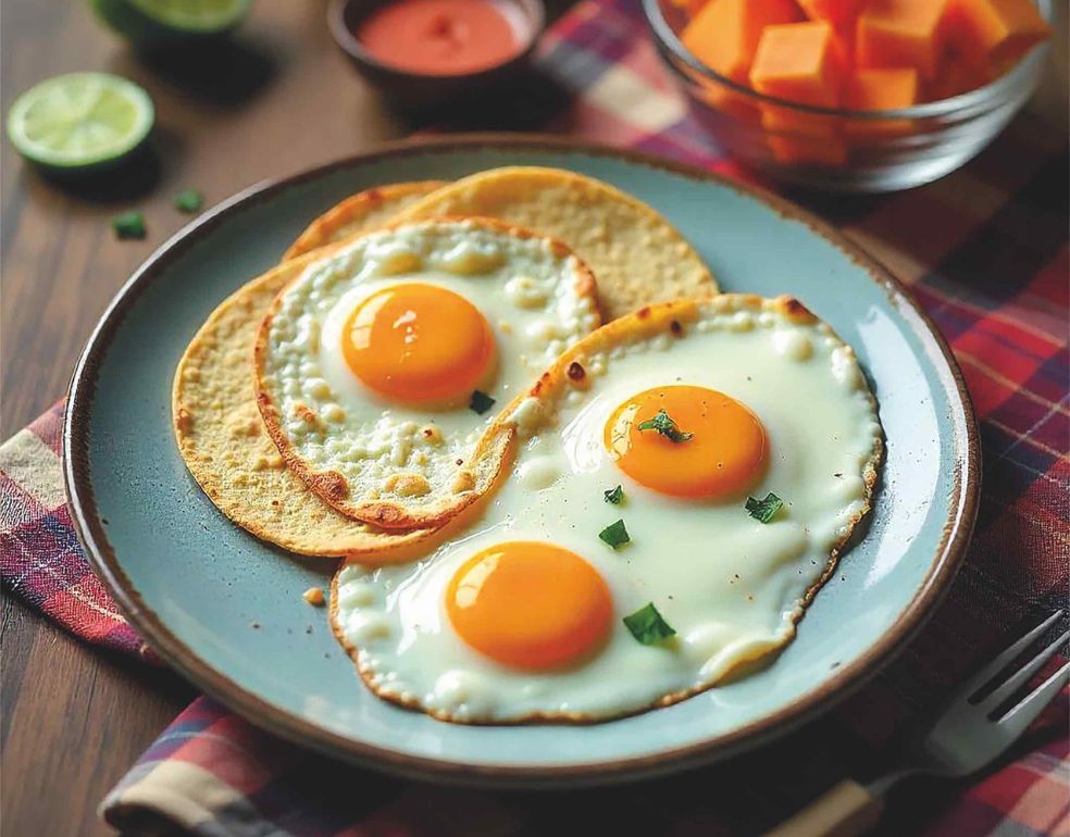 «Tres huevos fritos estrellados, unas tortillas de trigo o maíz, un plato con papaya en trozos y limón. Y una jarra de agua. Ni café ni salsas ni picantes».